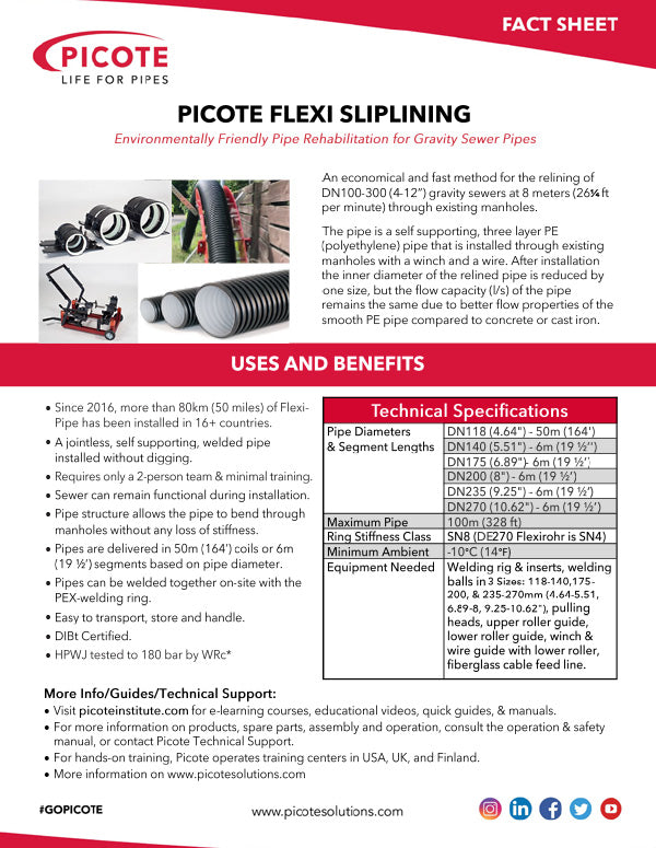 Our team is here to guide you through the Picote Flexi-Sliplining range to find the best solution for your next job.