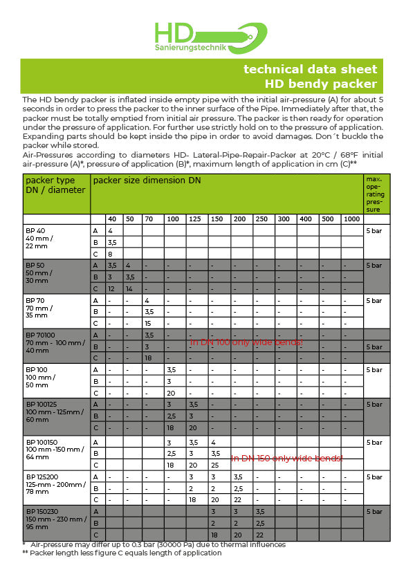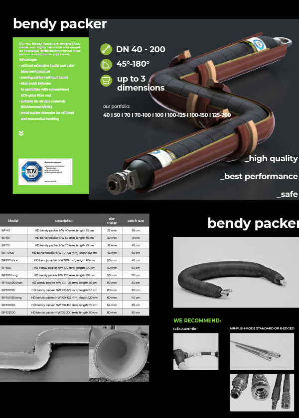 The HD Bendy Packers are dimensionally stable and highly bendable and enable an innovative rehabilitation without cross section constriction in pipe bends
